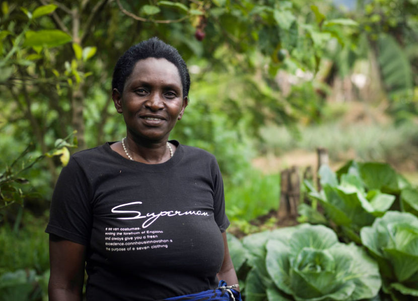 I am 53 years old. I live in Banda near the Kageno compound. I am married and a mother to 5 children, I am known as the vegetable lady. I learned agricultural techniques from Kageno and they provide me with seedlings. Since 2011, I have been making money from the vegetables I grow and feed my family. All of my children are in school and eat lunch provided by Kageno. I am proud none of my children have ever suffered malnutrition.